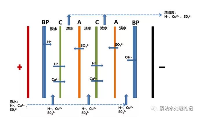 含有高濃度金屬離子的廢水系統,對電滲析而言,往往是非常頭疼的事情。一方面部分金屬離子在系統中容易形成膠體,或者運行過程中濃水和極水容易結垢,造成設備污堵;另一方面多價金屬離子容易進入極水室,從而在陰極室被還原成金屬單質,從而降低電極板處理效率,且不易恢復。
