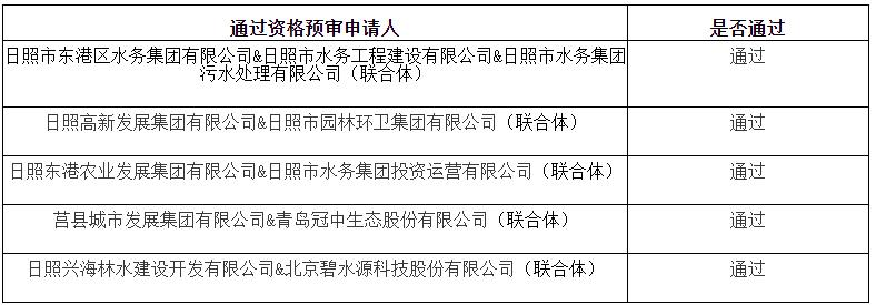 日照市全域水環境綜合治理ppp項目社會資本方采購項目資格預審結果公告